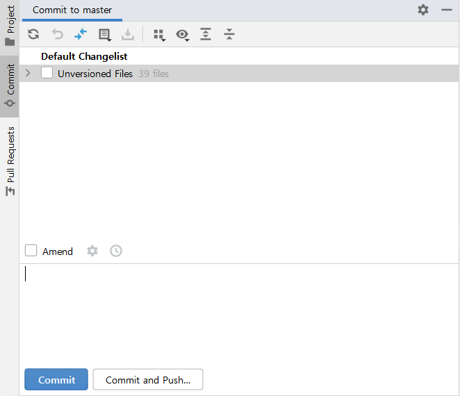 연동이 완료되면 위와 같이 Intellij 좌측에 Commit이라는 바가 생기는데 이를 클릭하면 원하는 파일을 add 할 수 있다.