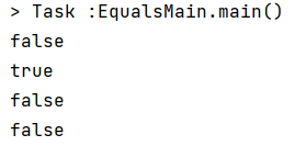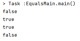// 동등성 비교 --> equals() 메소드를 오버라이딩하지 않으면 동등하더라도 false가 나온다.