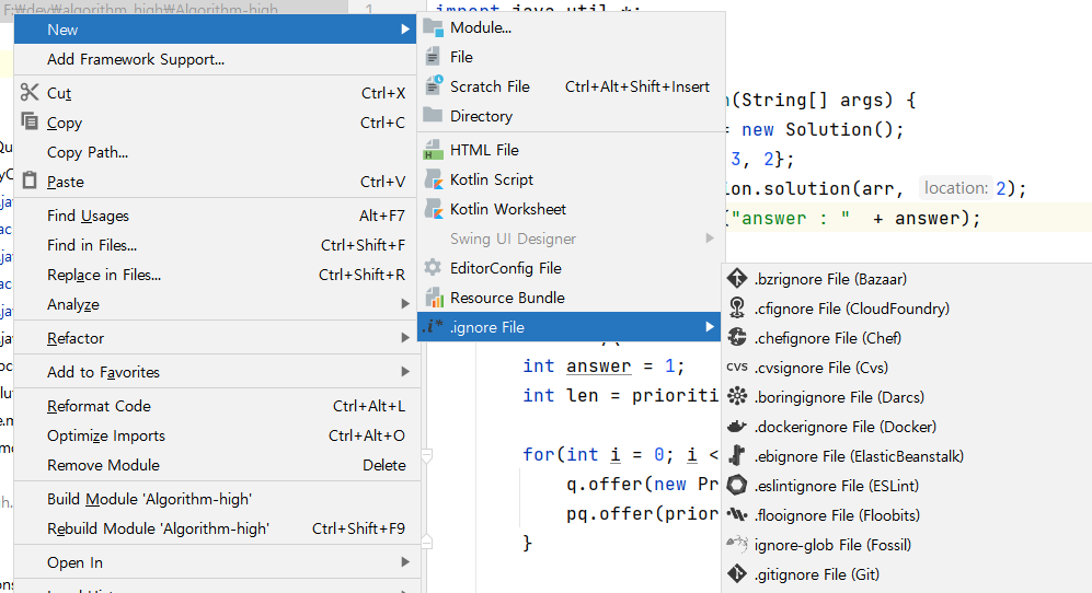 Intellij Community에서 gitignore 파일을 만드는 방법을 알아본다.
