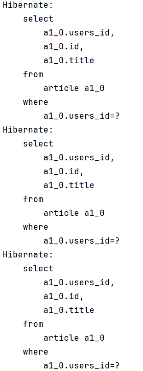 join을 통해서 한 번의 쿼리로 유저와 article 정보를 가져온다. 즉, N+1 문제가 발생하지 않는다.