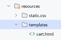 공통적으로 resources 폴더 밑에 존재하고 html 파일은 templates 폴더 밑에, css 파일은 static/css/ 폴더 밑에 위치하는 구조이다.